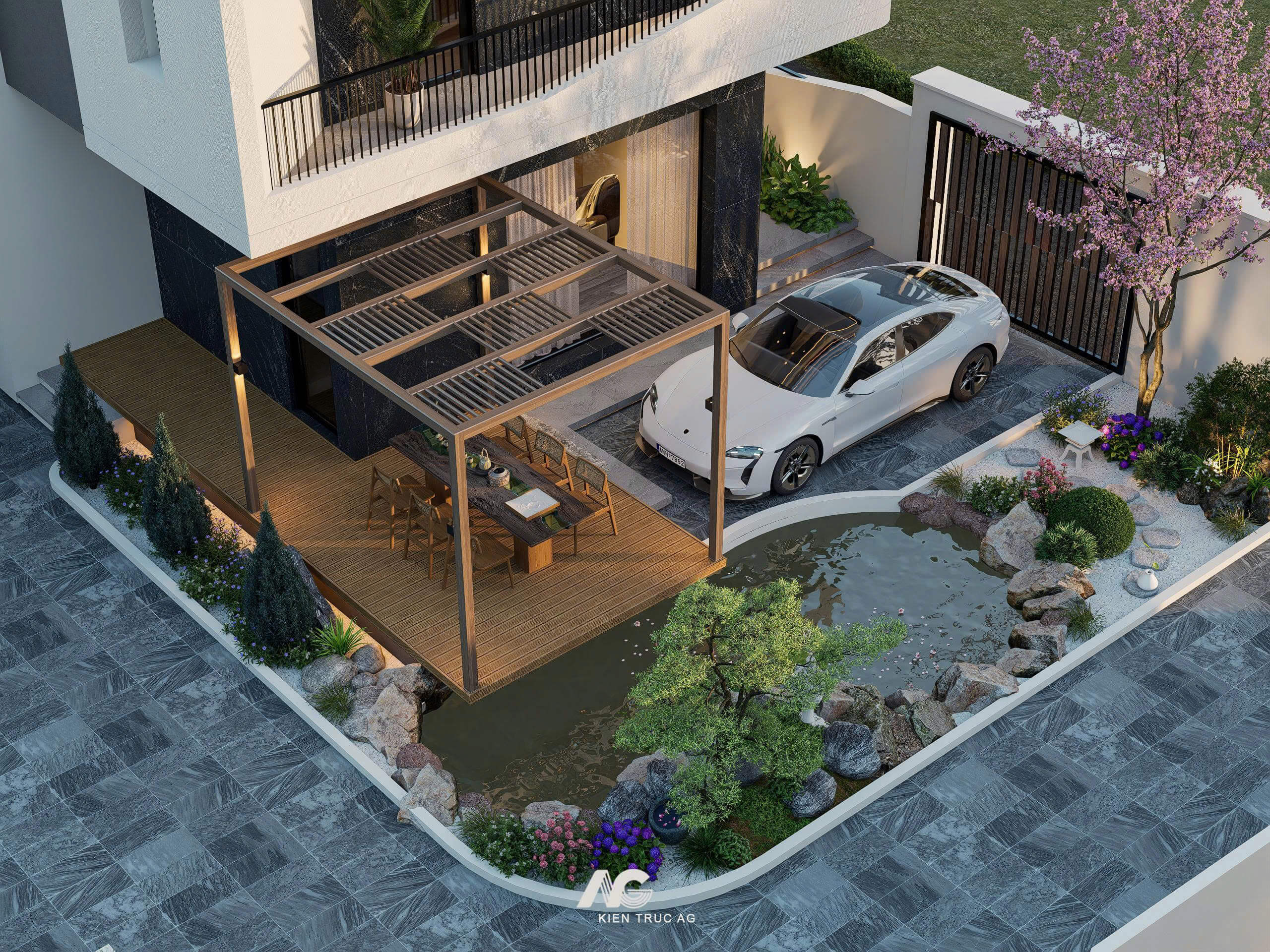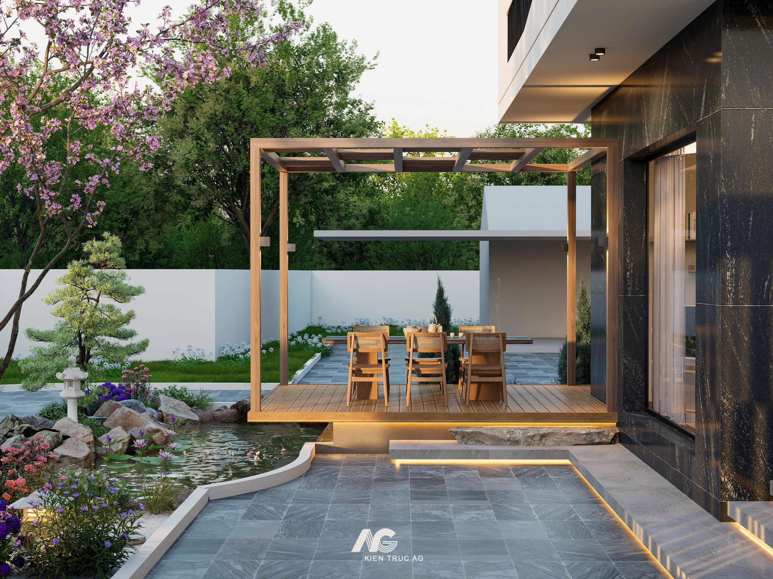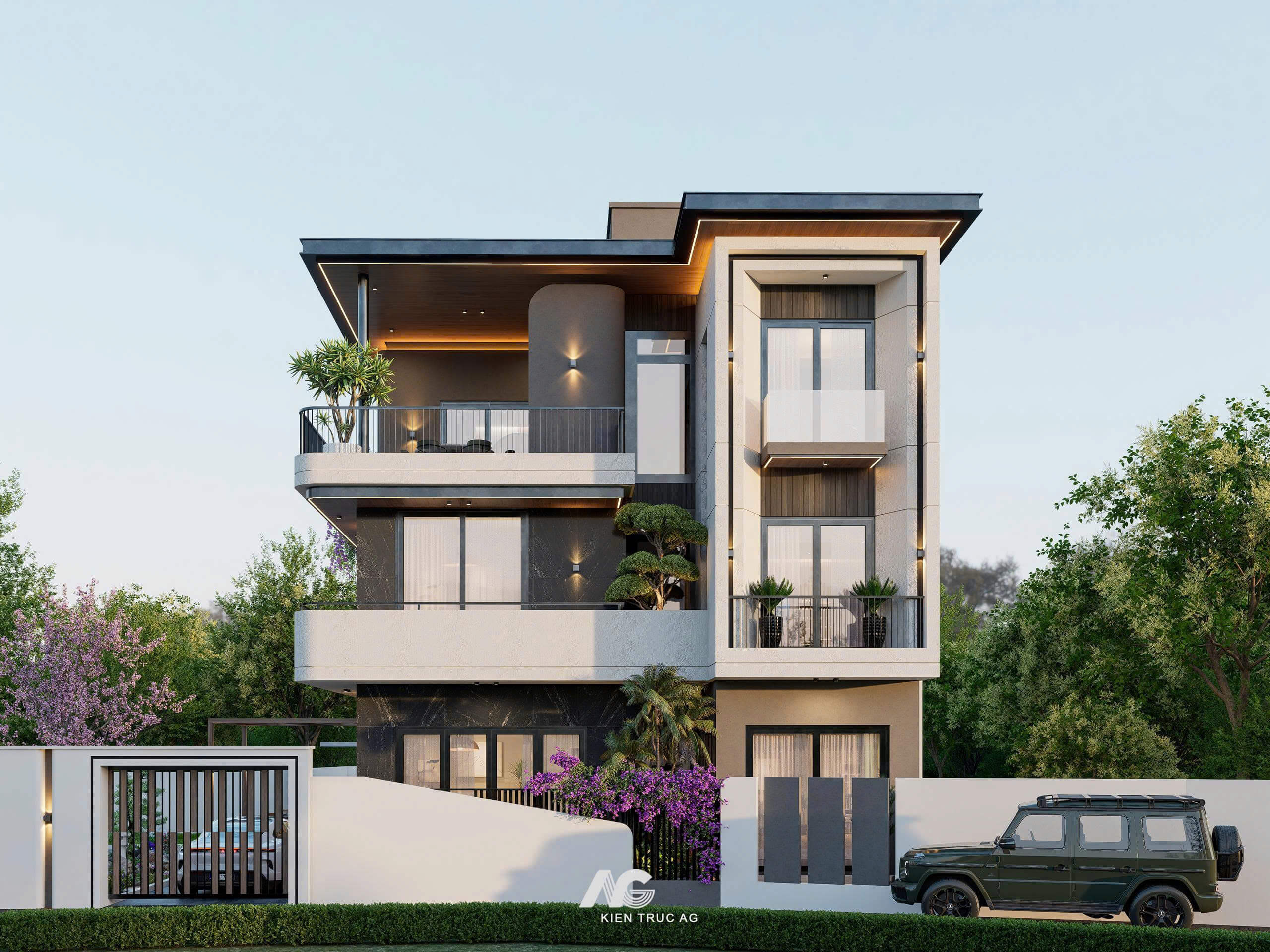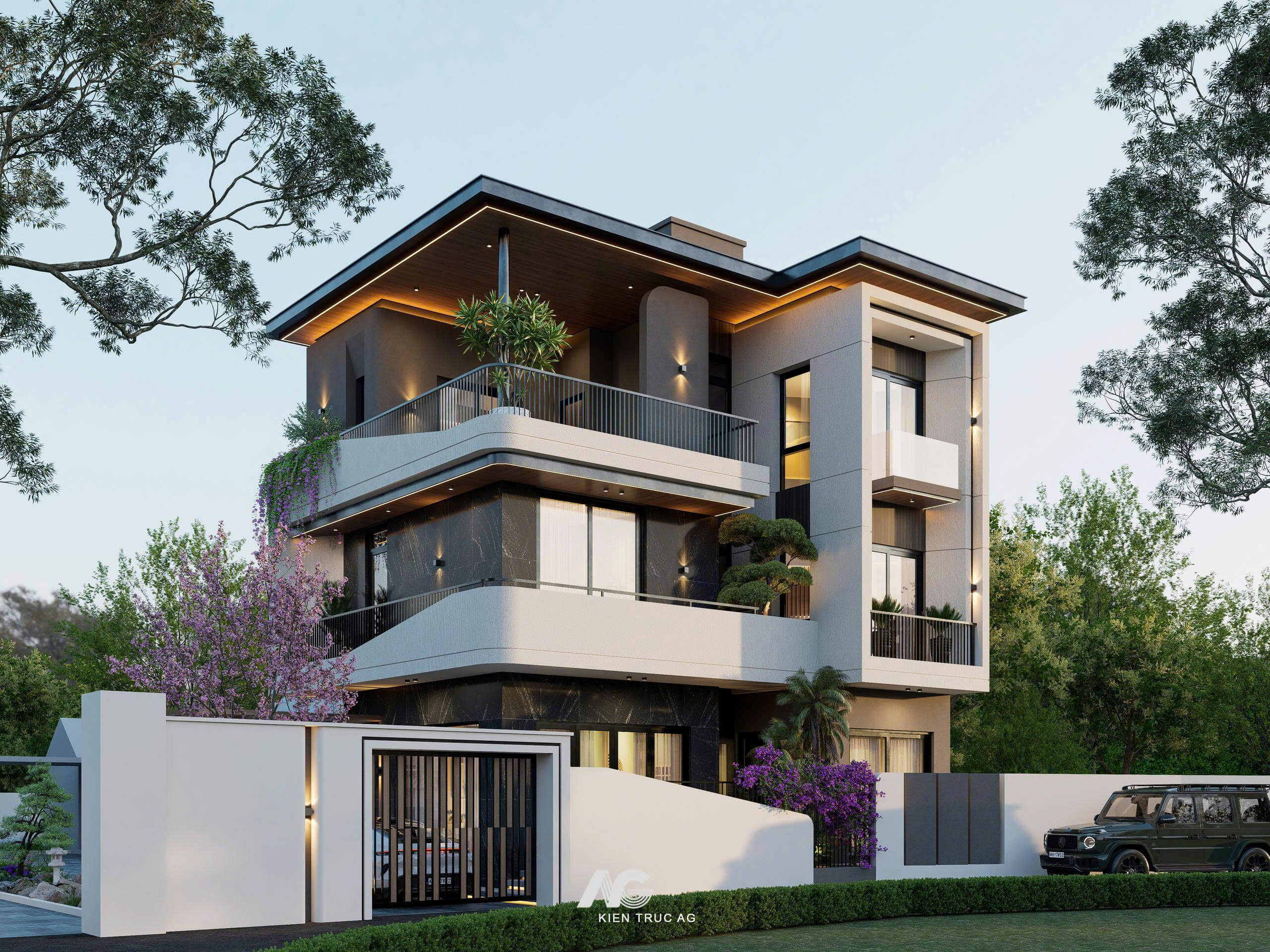 Có những công trình không cần gây chú ý — chúng tự giữ người ta lại bằng một cách rất riêng. Căn biệt thự này chọn sự tiết chế: những khối hình dứt khoát đứng cạnh đường cong nhẹ, như một nhịp cân bằng được tính toán kỹ. Khi chiều xuống, ánh sáng ấm trôi dọc mái, đổ xuống mép ban công — nơi người ta có thể ngồi rất lâu, chỉ để nhìn ánh sáng chạm vào lớp đá tối và vân gỗ. Cây xanh len vào từng khoảng thở, đủ riêng tư để tách khỏi bên ngoài, nhưng không khép kín. Ở đây, mọi thứ không cần nhiều — chỉ đủ để người ta ở lại, lâu hơn dự định.